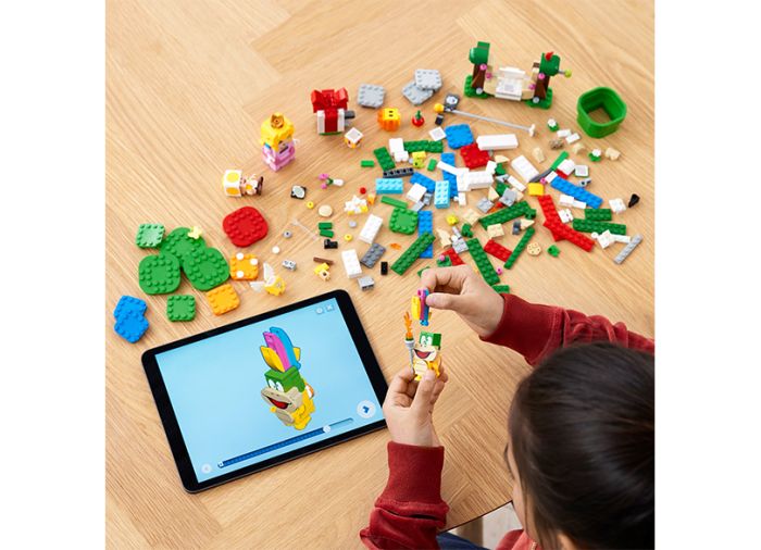 - Interactive LEGO® Peach™ figure – Features a colour sensor, an LCD screen to display various instant reactions to movement, and a speaker that plays iconic sounds and music from the video games