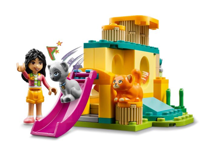 - Cat playground model building set – The LEGO® Friends Cat Playground Adventure set for girls, boys and kids aged 5 plus includes 2 mini-dolls, 2 cat figures and lots of animal care accessories