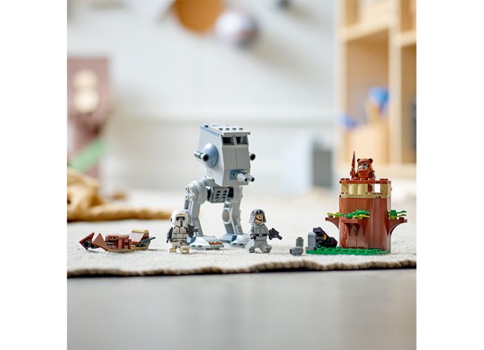 - Posable AT-ST walker, speeder and Ewok lookout – The AT-ST has a cockpit for the AT-ST Driver, and the Ewok hideoutfeatures a tree and a catapult for Wicket to launch stone elements