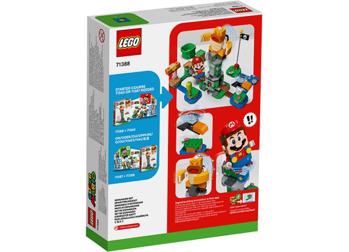 • Kids can add another action packed, digital coin collecting challenge to their LEGO® Super Mario™ universe with this Boss Sumo Bro Topple Tower Expansion Set (71388).