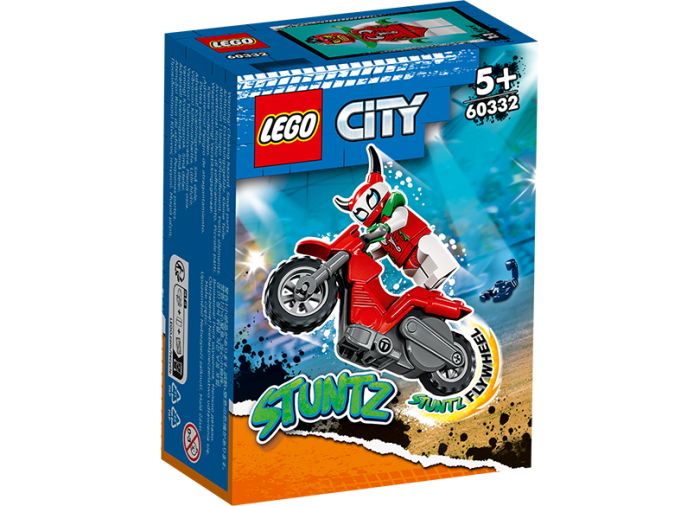 - Self-powered toy stunt bike – Ramp up the action with this LEGO® City Reckless Scorpion Stunt Bike (60332) toy playset, complete with a LEGO City Stuntz rider minifigure